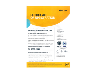 Founded in November 2010, Anhui SINOBEST Cosmeceutical Co., Ltd. (SINOBEST) is a wholly-owned subsidiary of Nanjing COSMOS Chemical Co., Ltd. Located in Cihu High-tech Development Zone, Ma’anshan City, Anhui Province, and with a floor area about 13.18 acres, the Company is a modern science & technology manufacturing enterprise specialized in the R&D, production and sales of cosmetics raw materials, with the capacity of 15,000 t/a fine chemicals. Based on its excellent quality and innovation capability, the Company has passed SGS EU cosmetics EFfCI certification (EFfCI GMP), ICH Q7 audit, USA FDA on-site audit, as well as the certifications of QMS, OHS management system, SA8000 social responsibility standard and Halal system.